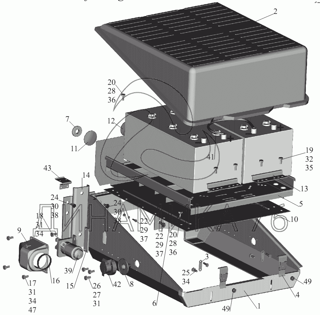 Перечень комплектующих от Установка аккумуляторных батарей на МАЗ-631236
