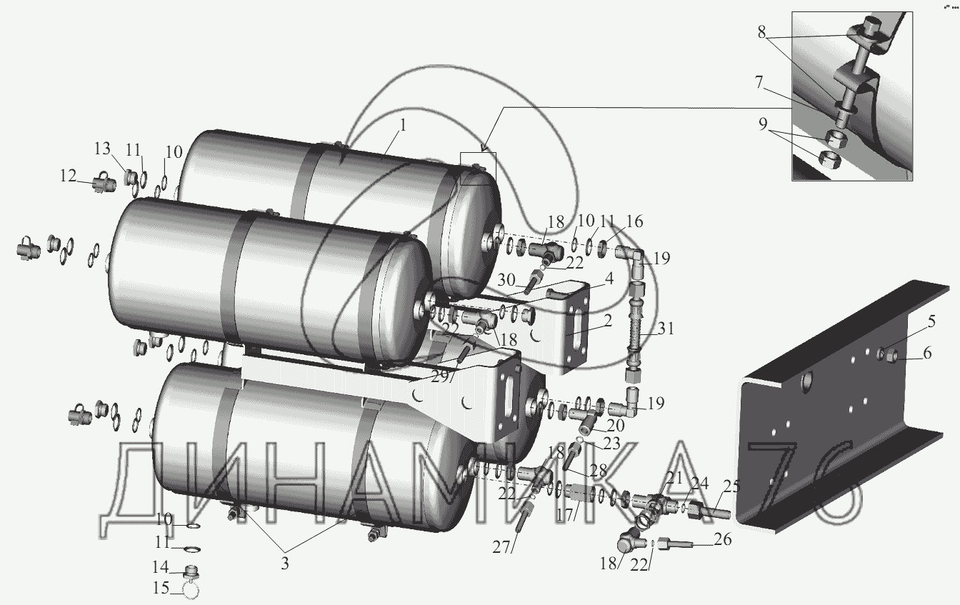 Перечень комплектующих от Установка ресиверов и присоединительной арматуры на МАЗ-631236