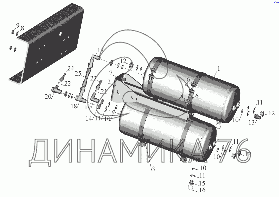 Перечень комплектующих от Установка ресиверов и присоединительной арматуры на МАЗ-631236
