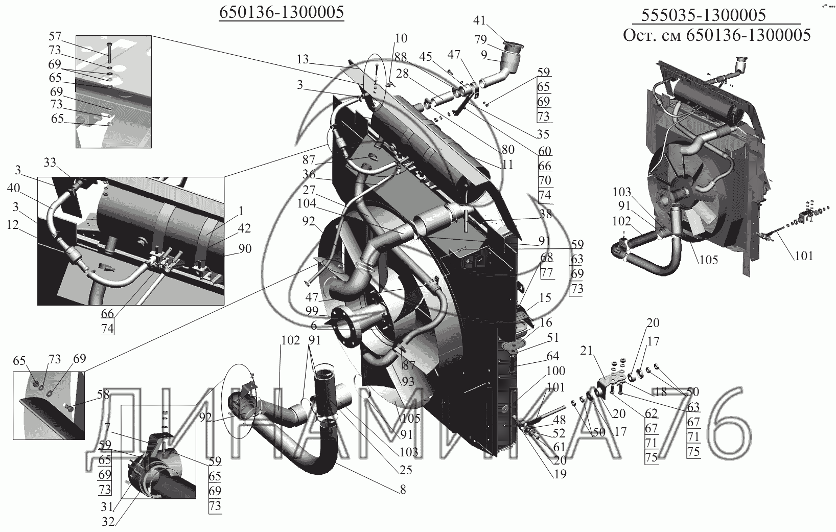 Схемы запчастей предназначены для справочных целей! Мы продаем не все запчасти от Установка системы охлаждения на МАЗ-631236, представленные в этом списке.