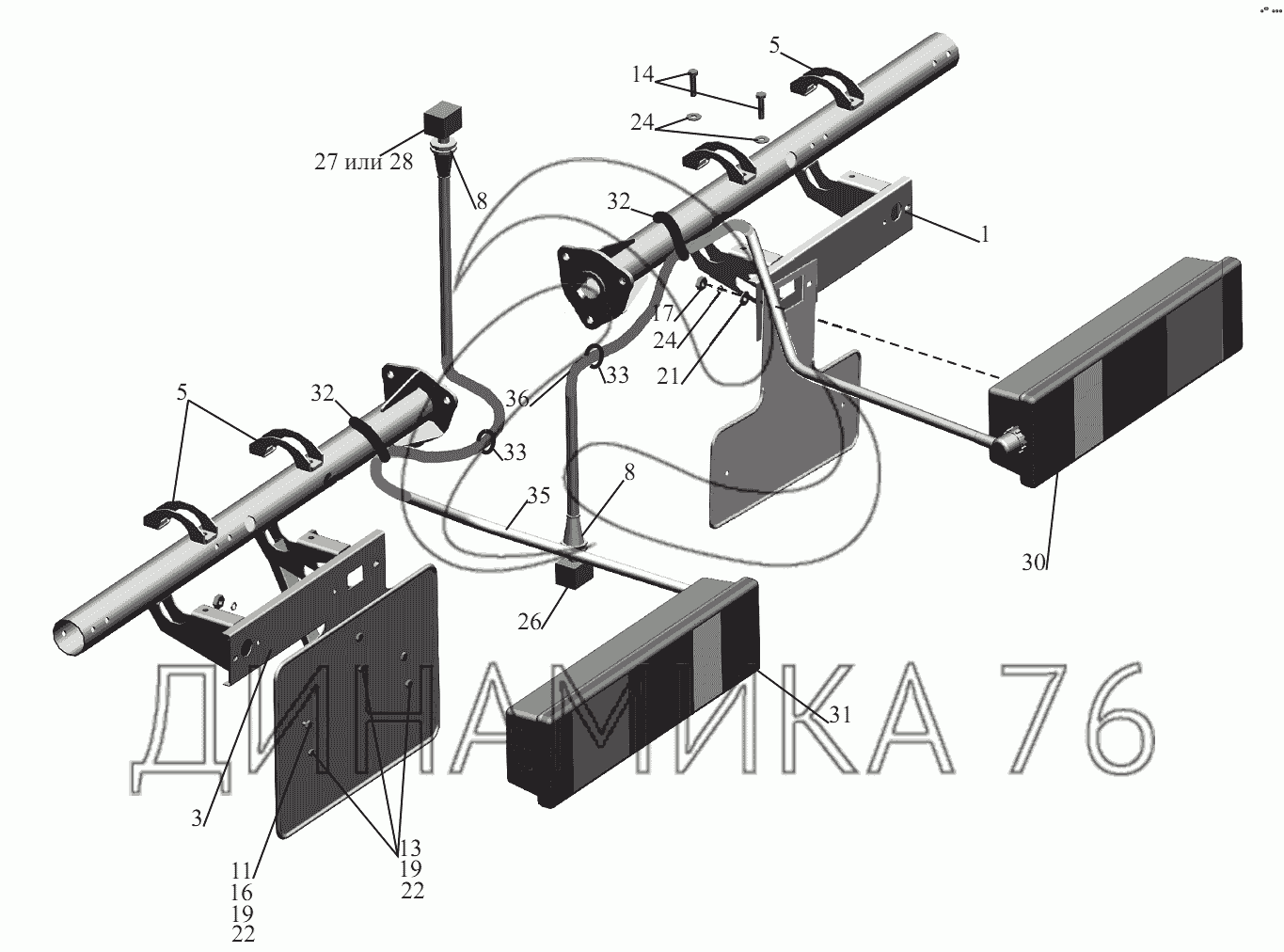 Перечень комплектующих от Установка задних фонарей 6501-3700009 на МАЗ-631236