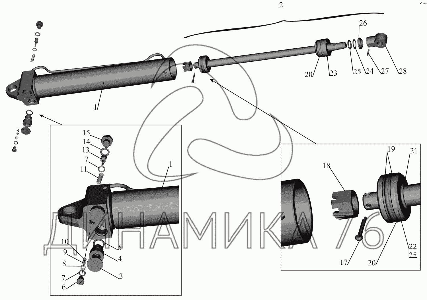 Схемы запчастей предназначены для справочных целей! Мы продаем не все запчасти от Гидроцилиндр 64221-5003010 на МАЗ-631705, представленные в этом списке.