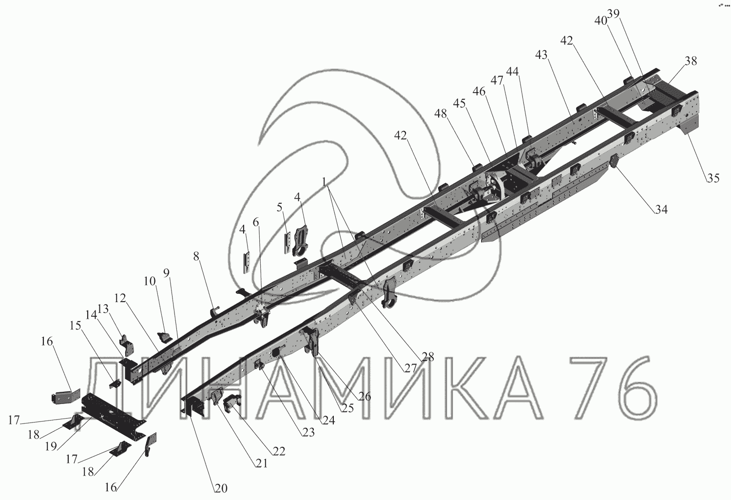 Перечень комплектующих от Рама 631708-2801002-012 на МАЗ-631705
