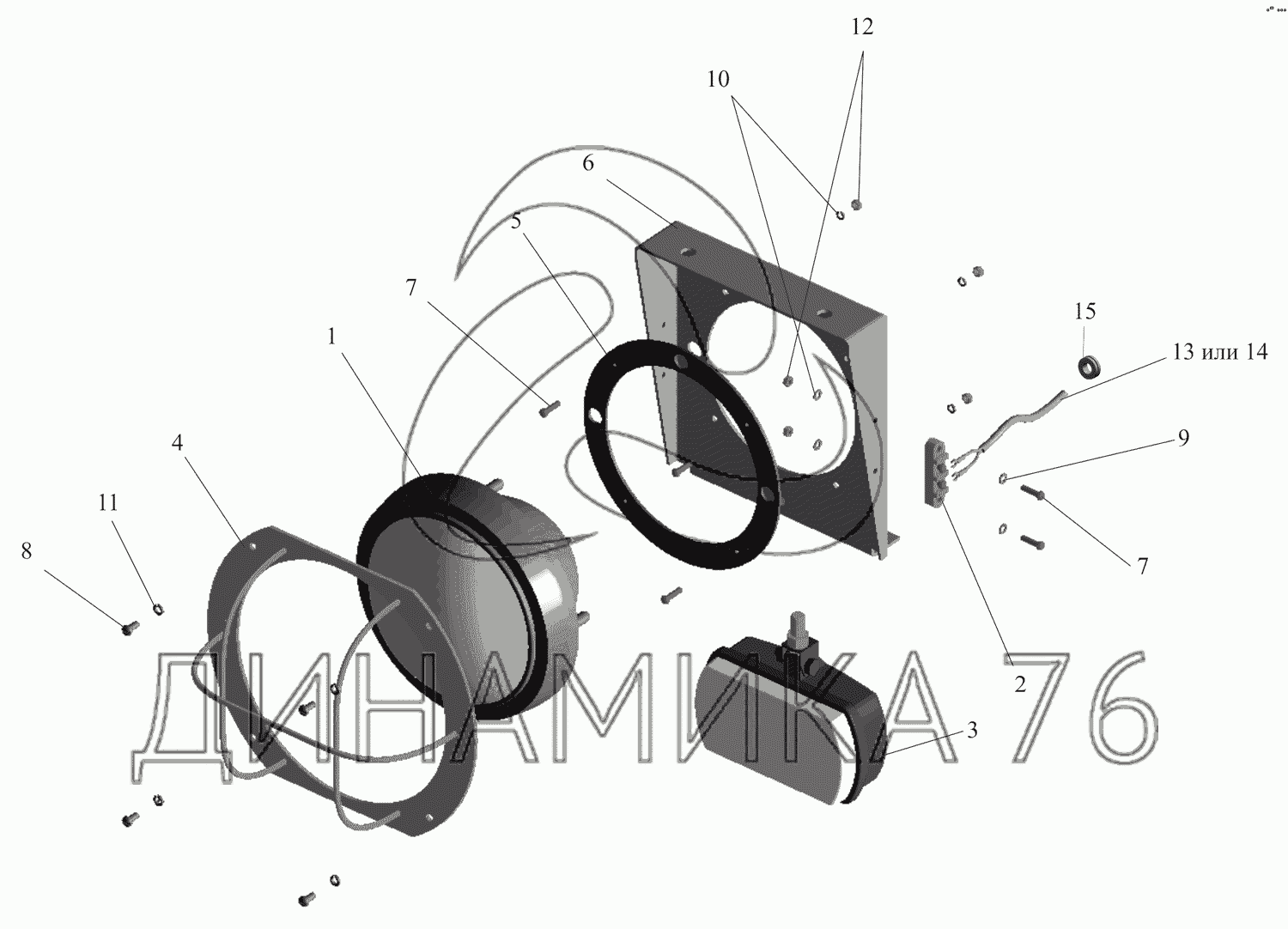 Перечень комплектующих от Установка фар 631708-3700006-700 на МАЗ-631705