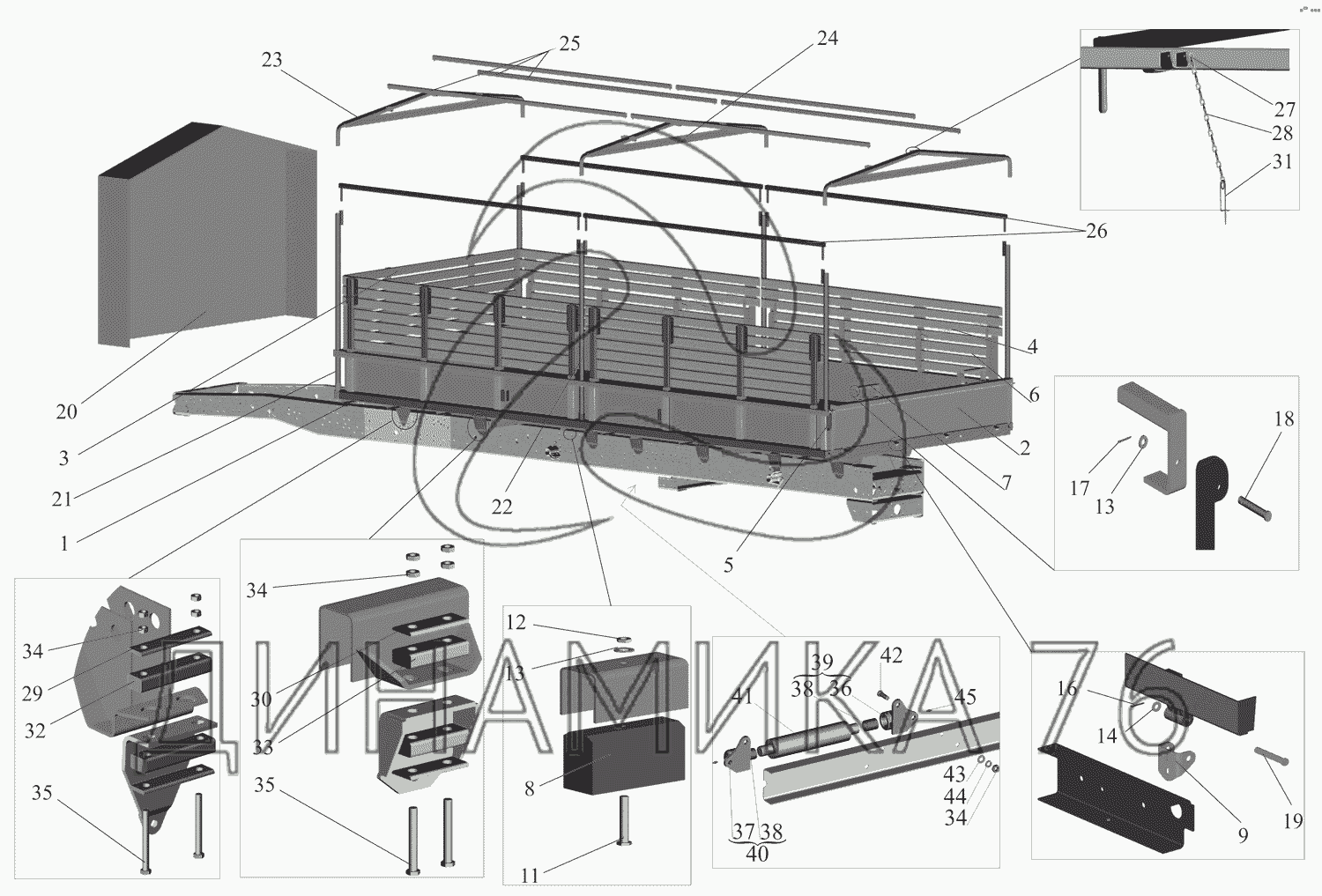 Схемы запчастей предназначены для справочных целей! Мы продаем не все запчасти от Установка платформы 6317-8500002 на МАЗ-631705, представленные в этом списке.