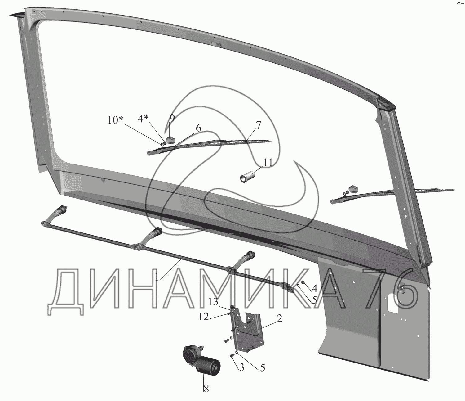 Установка стеклоочистителя 6317-3700041 на МАЗ-631705 (до 2010 г.)