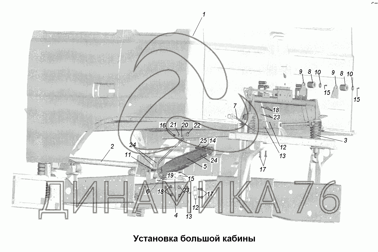 Перечень комплектующих от Кабина\Установка большой кабины на МАЗ-631705, 631708