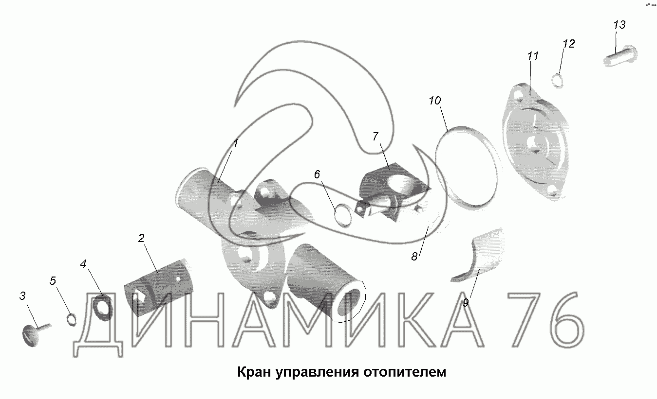 Перечень комплектующих от Отопление\Кран управления отопителем на МАЗ-631705, 631708