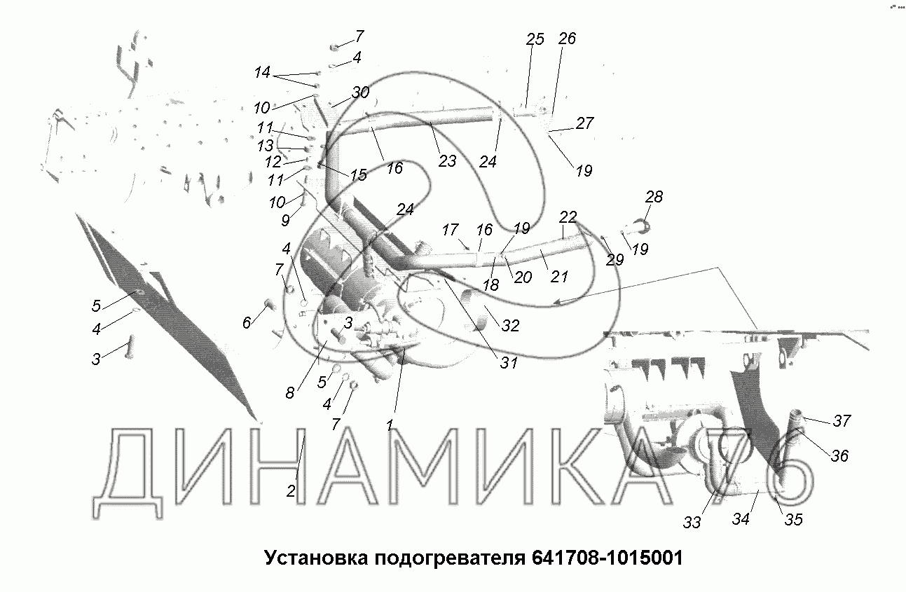 Перечень комплектующих от Установка подогревателя 641708-1015001 на МАЗ-631705, 631708