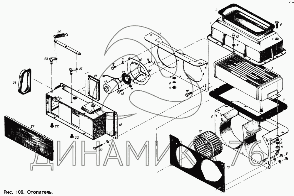 Перечень комплектующих от Отопитель на МАЗ-6317