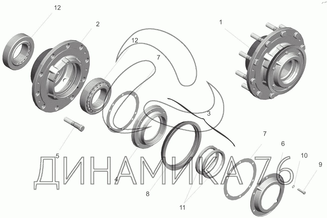 Перечень комплектующих от Ступица заднего моста на МАЗ-642208, МАЗ-642205, МАЗ-543208