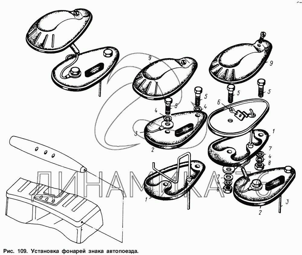 Перечень комплектующих от Установка фонарей знака автопоезда на МАЗ-64221