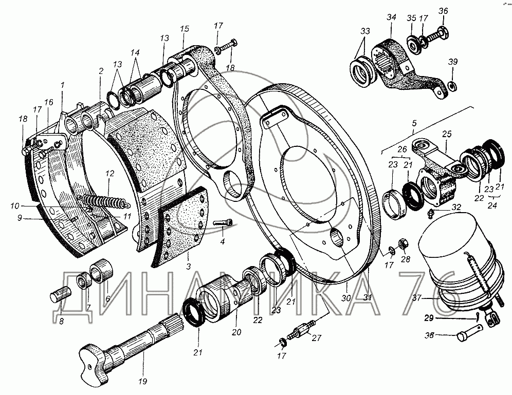 Перечень комплектующих от Тормозной механизм заднего колеса на МАЗ-64226
