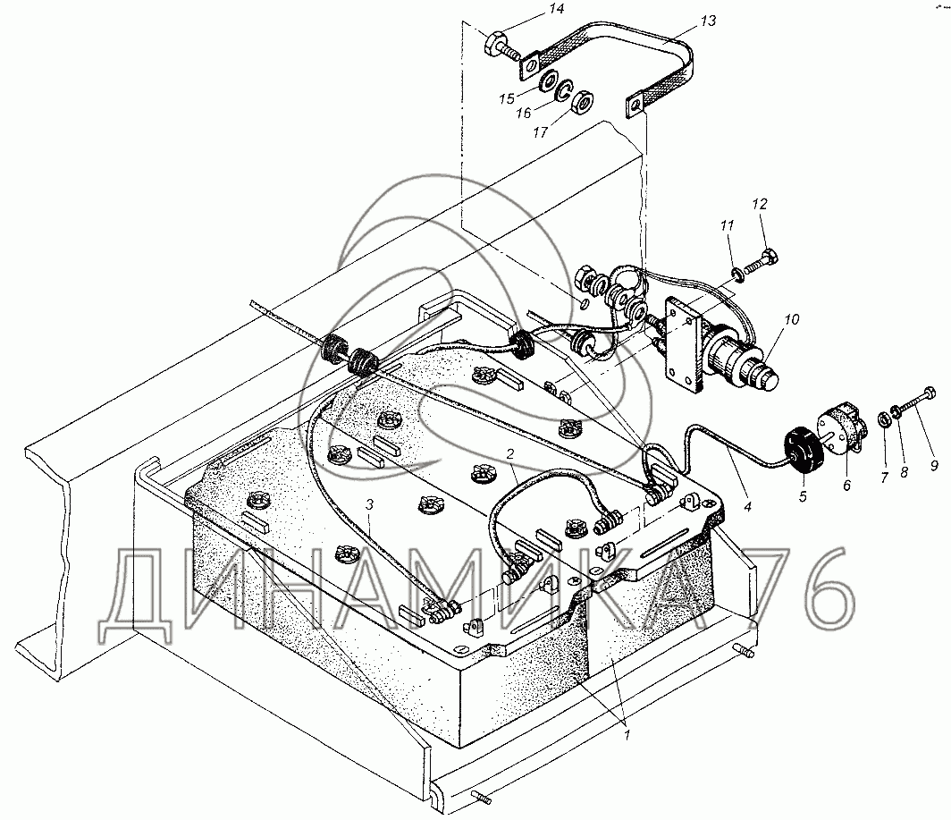 Перечень комплектующих от Установка аккумуляторных батарей на МАЗ-64226