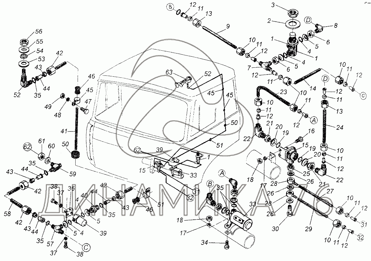 Перечень комплектующих от Установка пневмосигнала и останова двигателя на МАЗ-64226