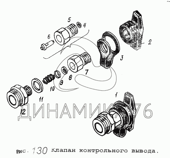 Перечень комплектующих от Клапан контрольного вывода на МАЗ-64229