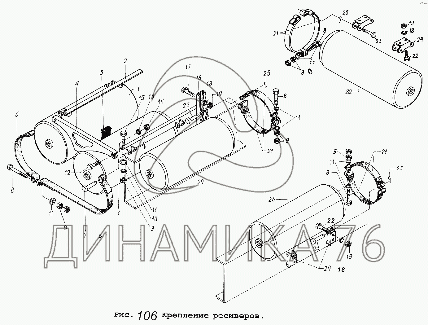 Перечень комплектующих от Крепление ресиверов на МАЗ-64229