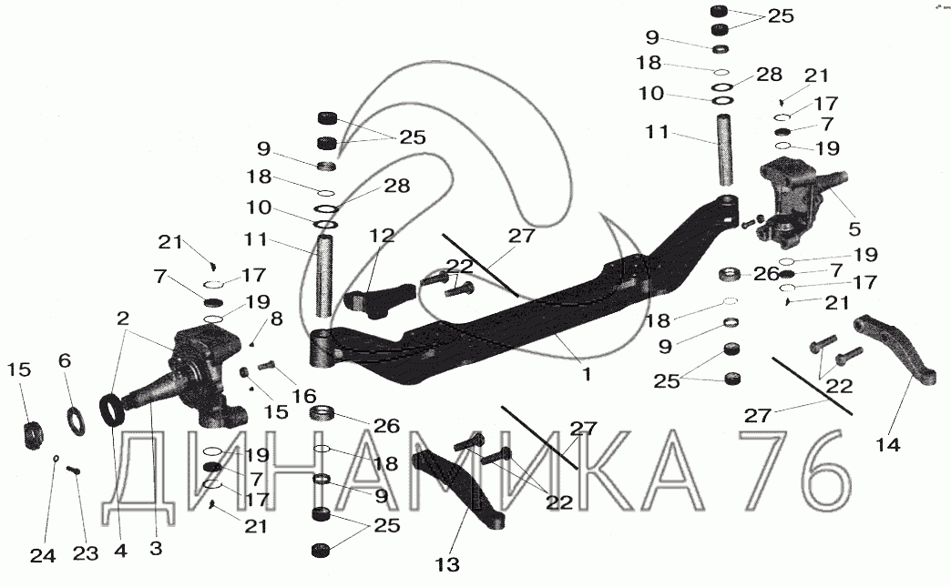 Перечень комплектующих от Балка передней оси на МАЗ-6422