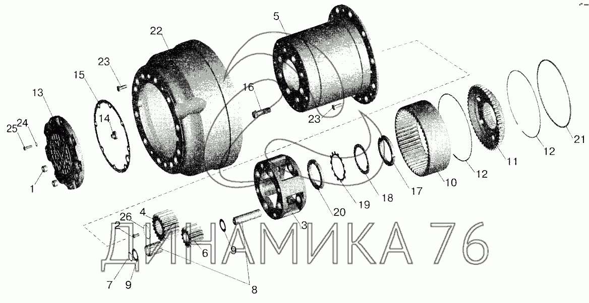 Перечень комплектующих от Колесный редуктор на МАЗ-6422
