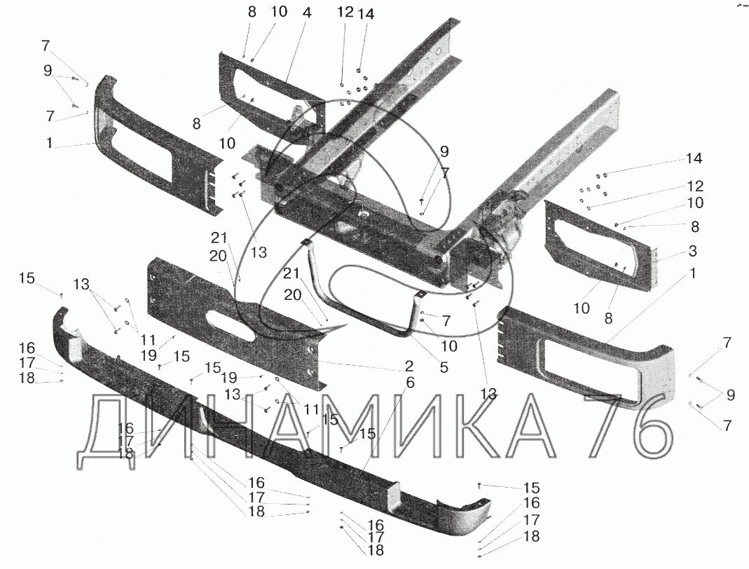 Перечень комплектующих от Крепление бампера на МАЗ-6422
