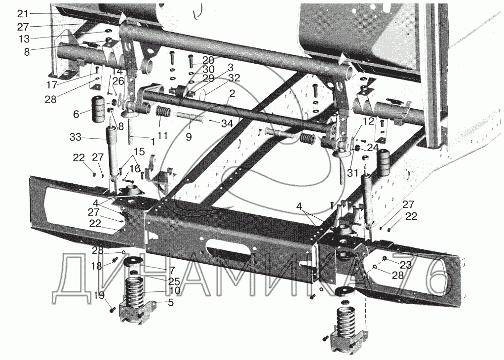 Переднее подрессоривание большой кабины — МАЗ-6422:
