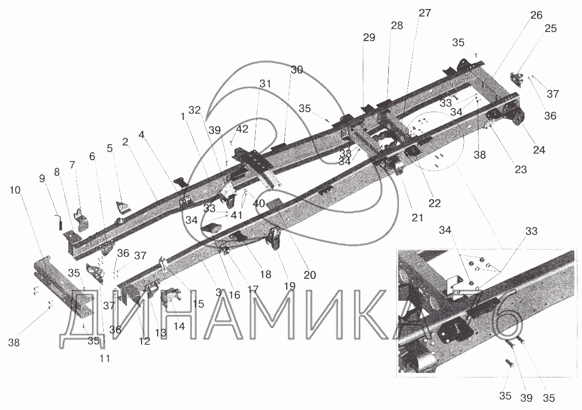 Перечень комплектующих от Рама 555102 на МАЗ-6422
