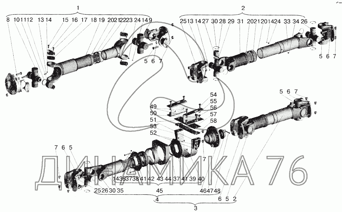 Схемы запчастей предназначены для справочных целей! Мы продаем не все запчасти от Установка карданных валов на МАЗ-6422, представленные в этом списке.