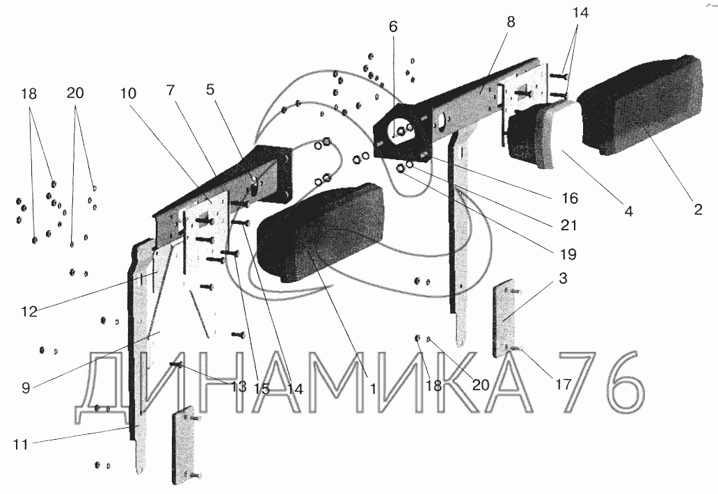 Перечень комплектующих от Установка задних фонарей МАЗ-555102 на МАЗ-6422