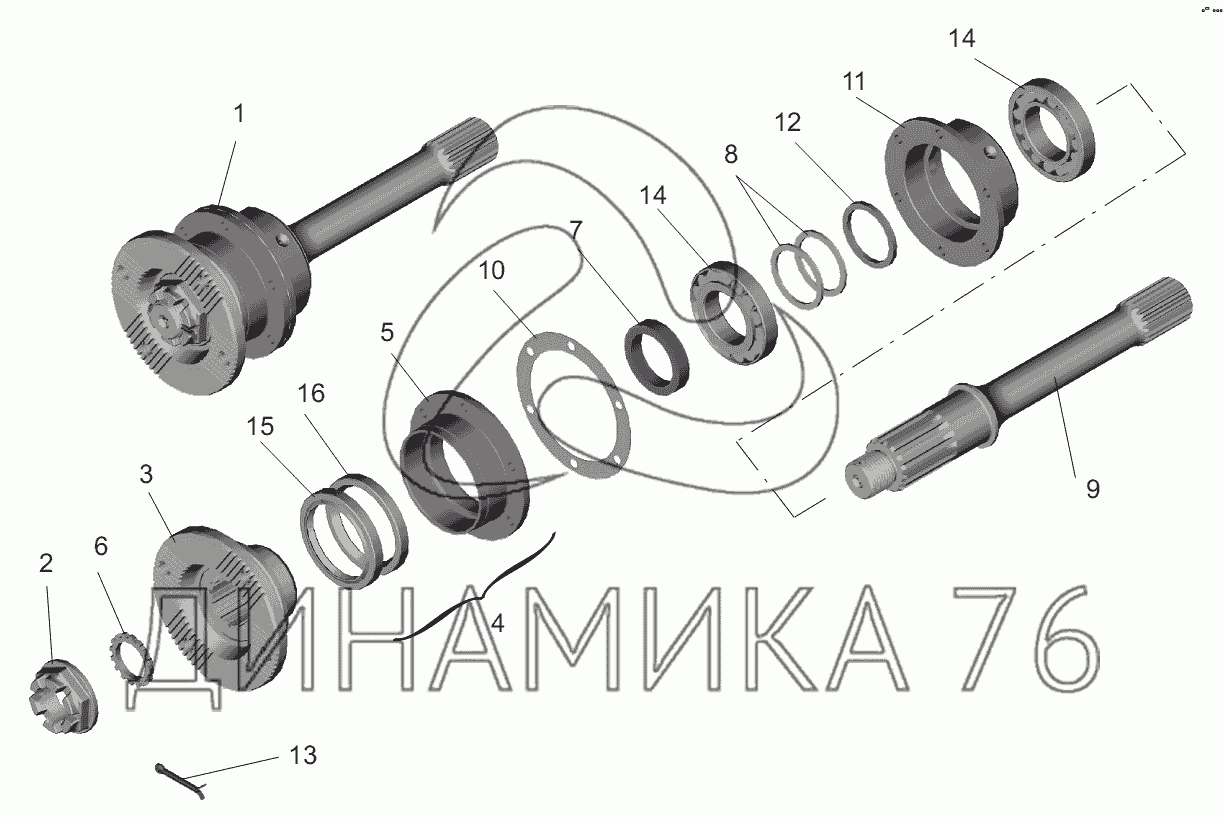 Перечень комплектующих от Мост средний. Вал задний на МАЗ-6422, 5432