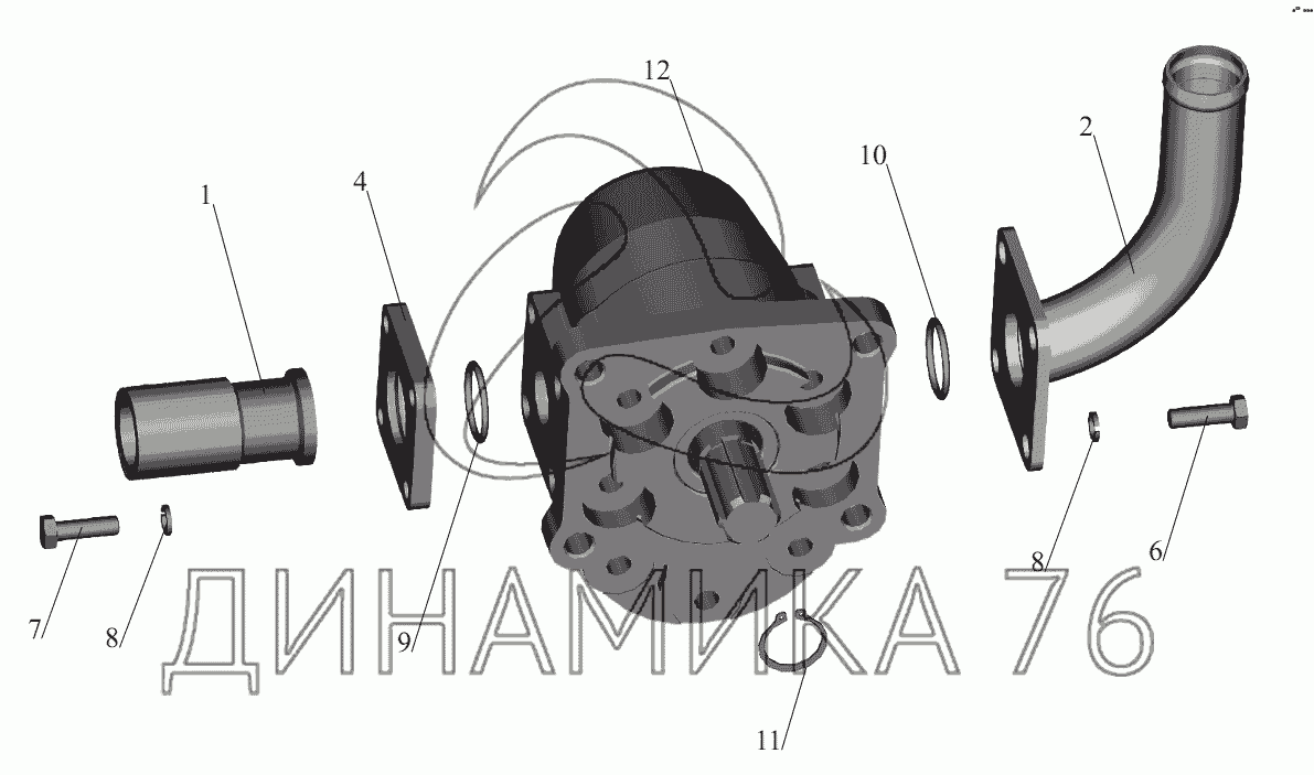 Перечень комплектующих от Насос с арматурой на МАЗ-6422, 5432