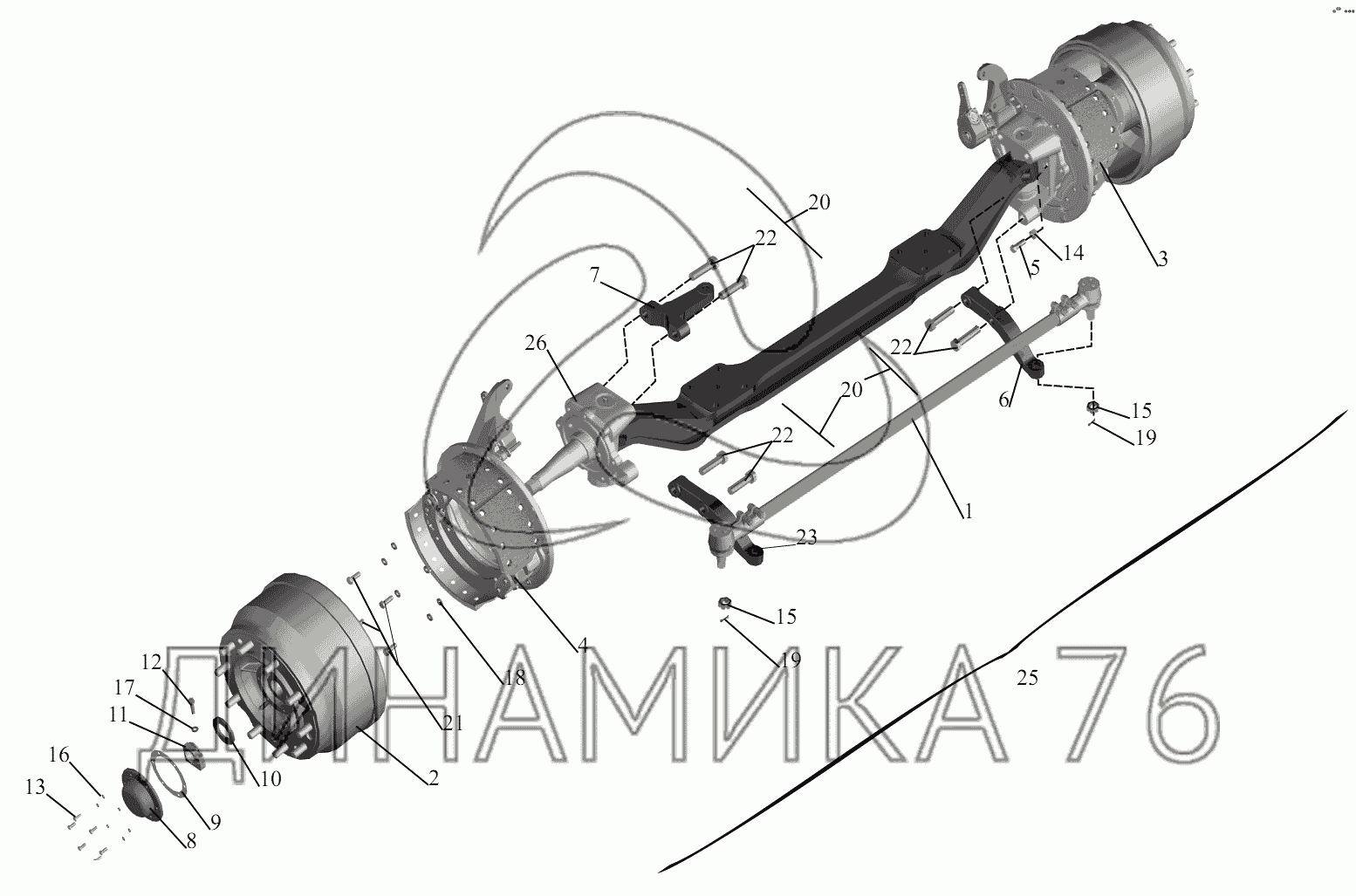 Передняя ось 543265-3000015 — МАЗ-6422, 5432: