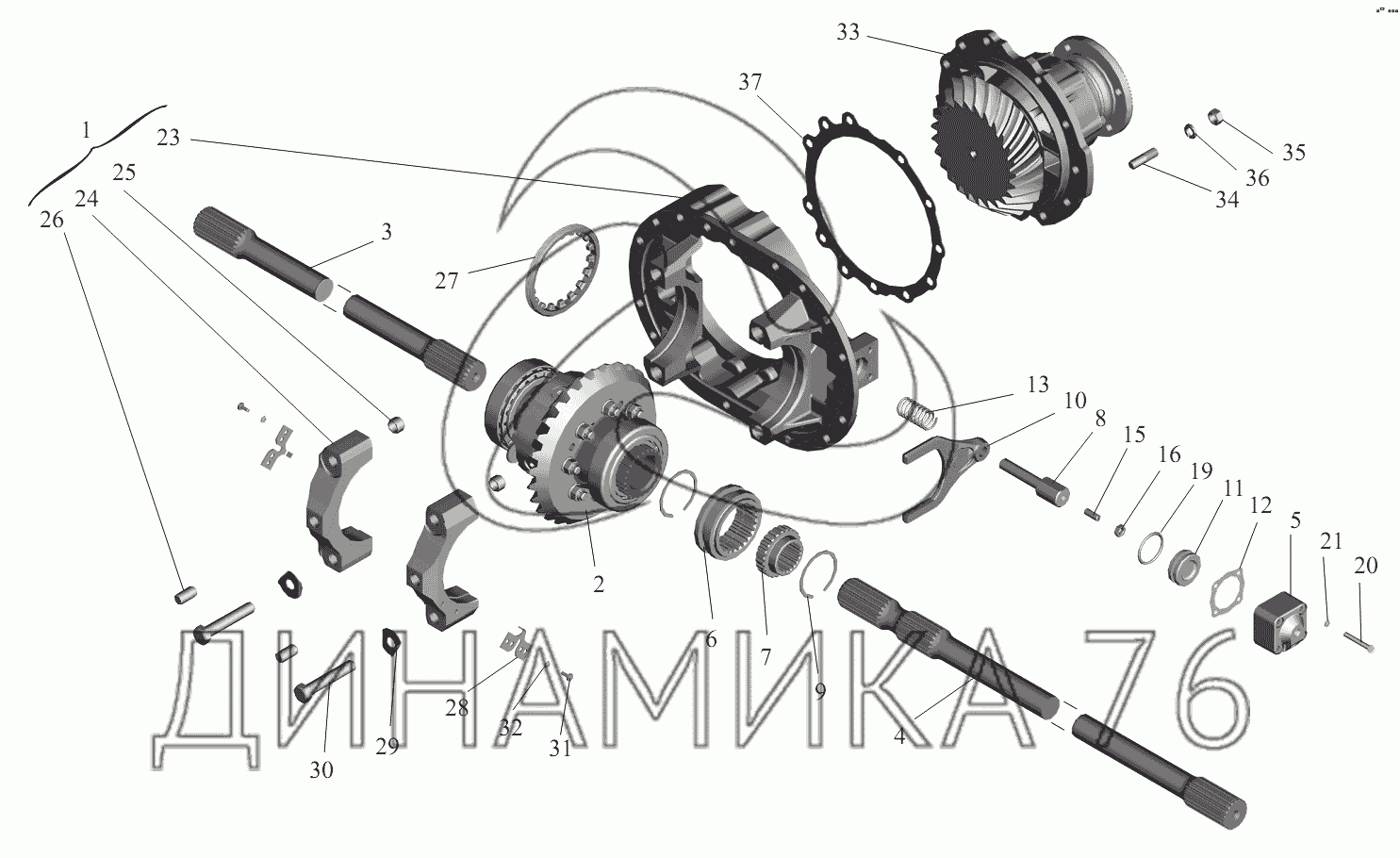 Перечень комплектующих от Редуктор заднего моста на МАЗ-6422, 5432
