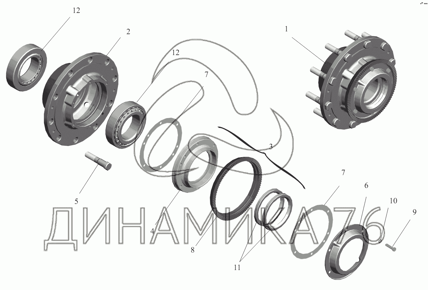 Перечень комплектующих от Ступица заднего моста на МАЗ-6422, 5432