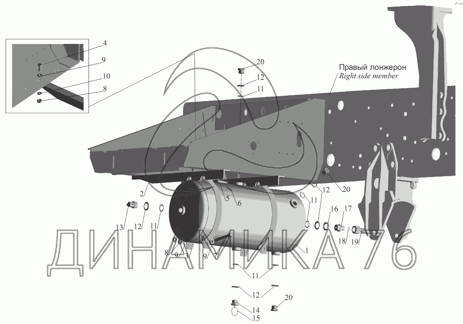 Схемы запчастей предназначены для справочных целей! Мы продаем не все запчасти от Установка ресивера 631708-3513005 на МАЗ-6422, 5432, представленные в этом списке.