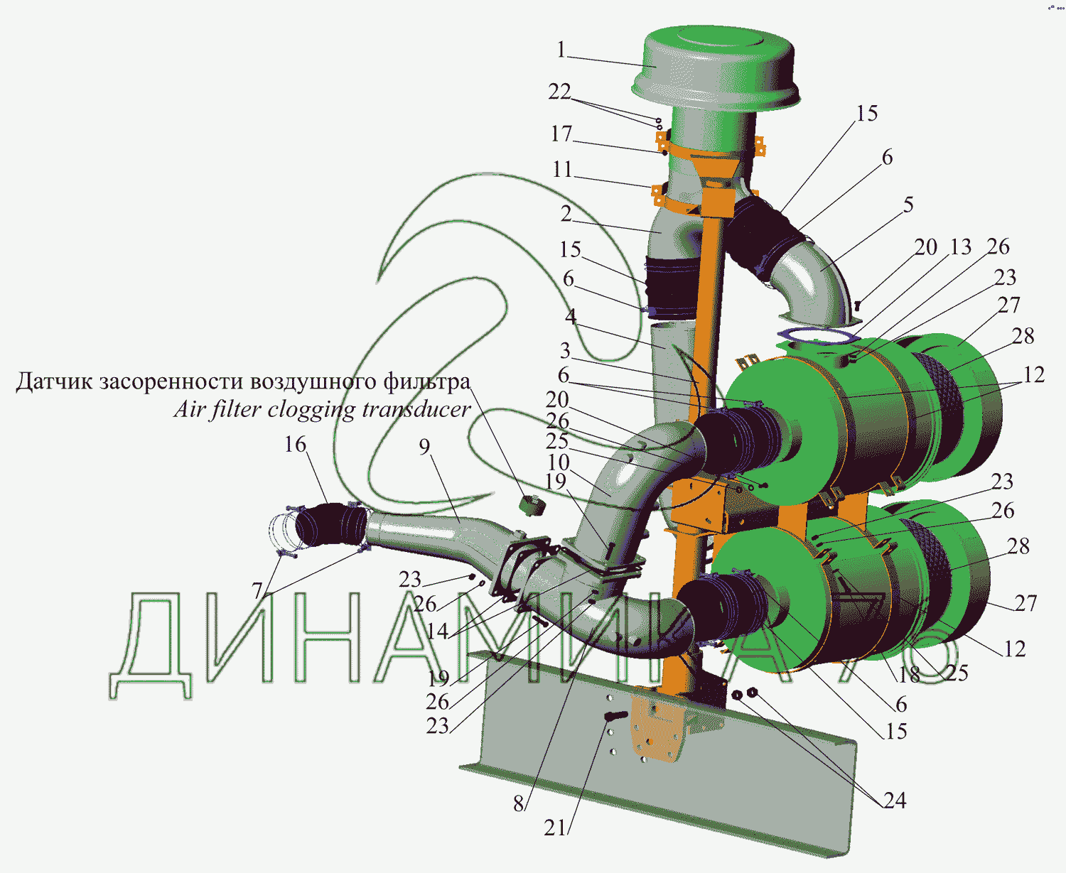 Система питания воздухом на МАЗ-642505, 642508 (до 2006 г.)