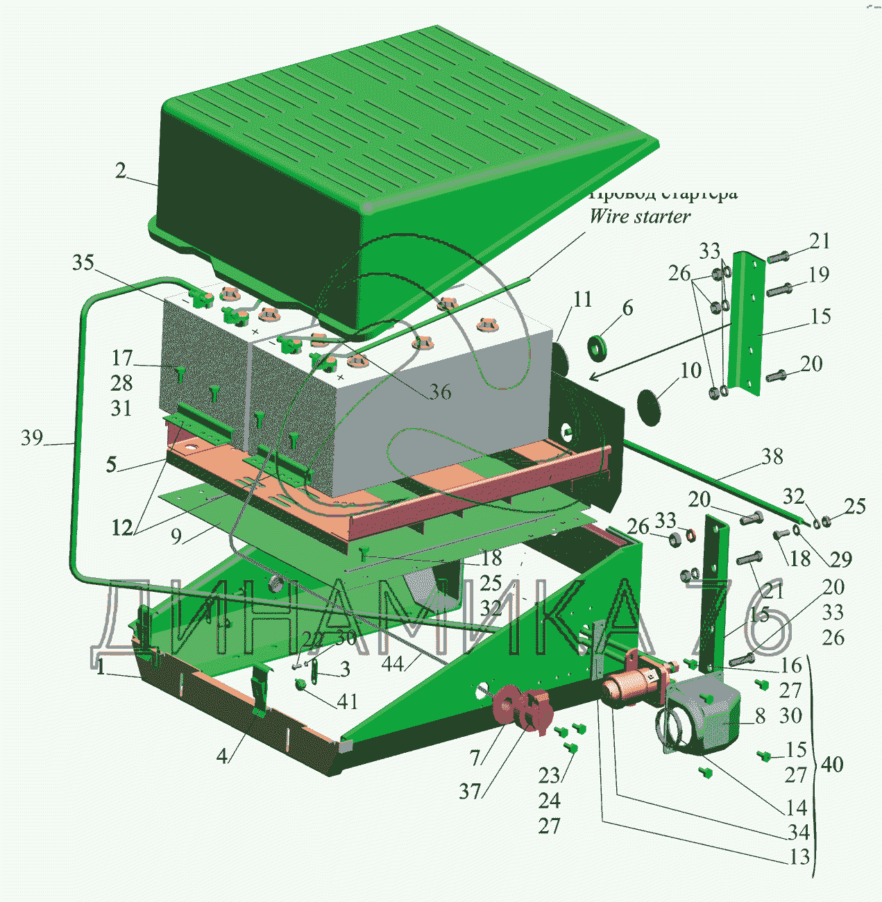 Перечень комплектующих от Установка аккумуляторных батарей на МАЗ-642505, 642508
