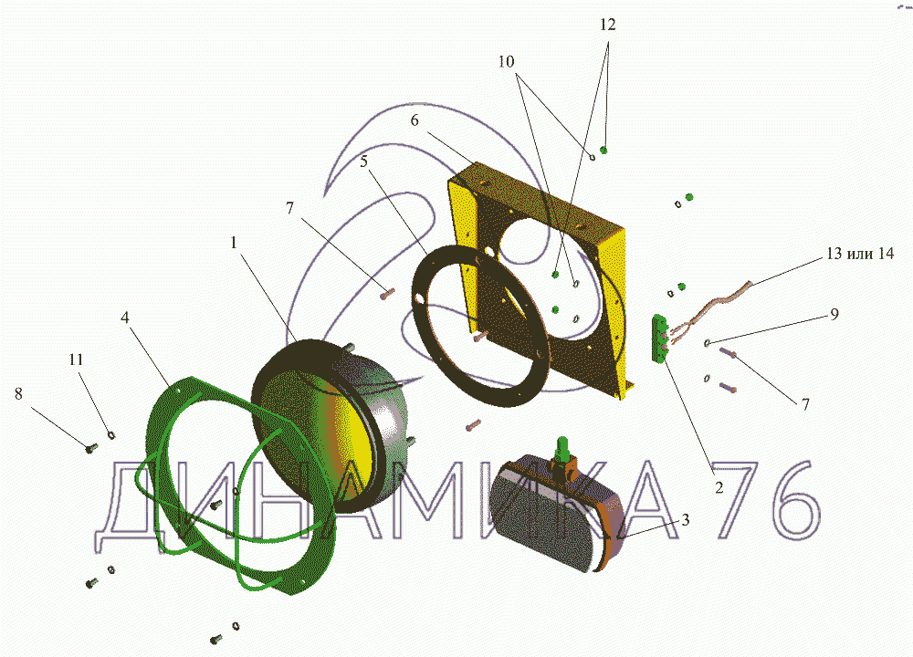 Перечень комплектующих от Установка головных фар на МАЗ-642505, 642508