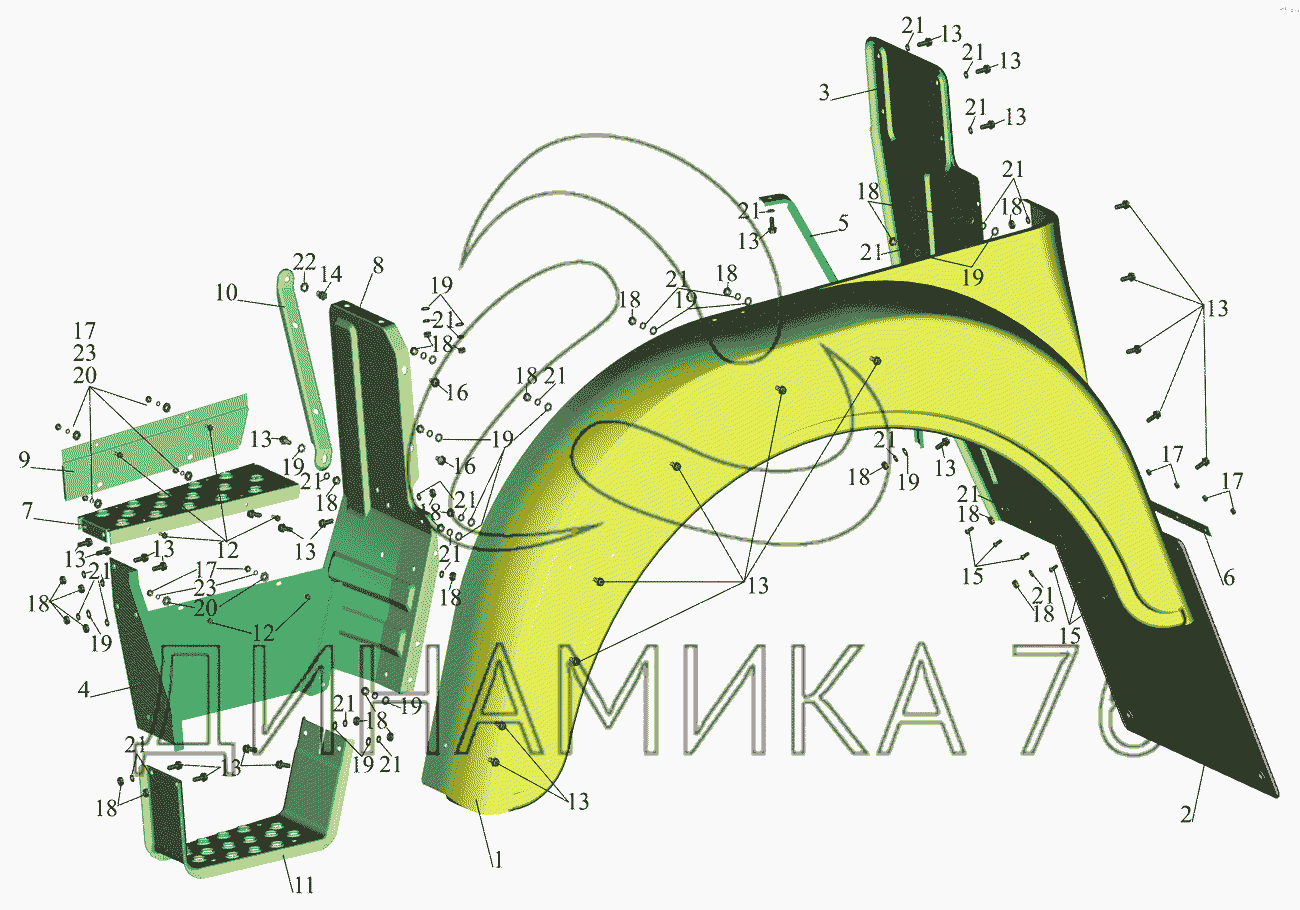 Перечень комплектующих от Установка оперения на МАЗ-642505, 642508