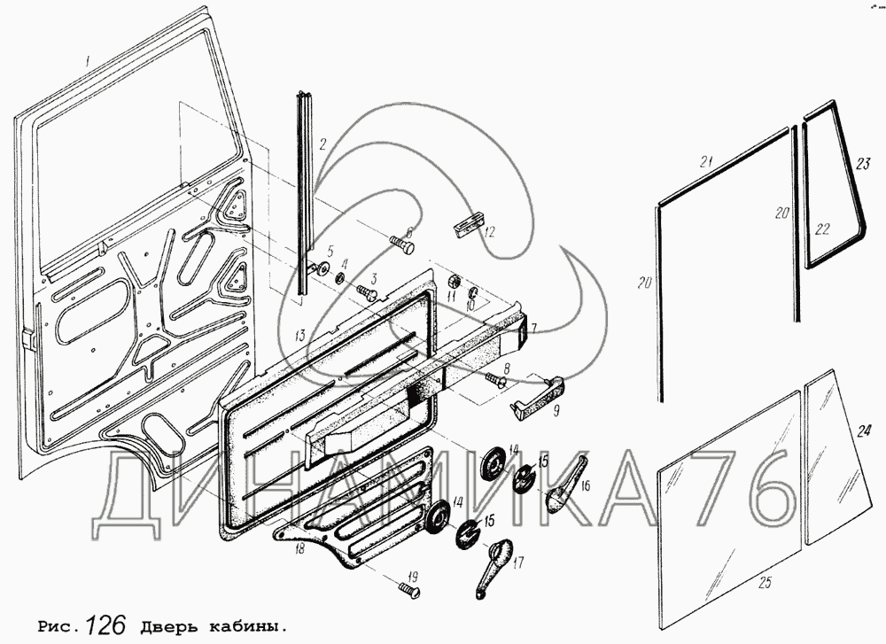 Перечень комплектующих от Дверь кабины на МАЗ-64255