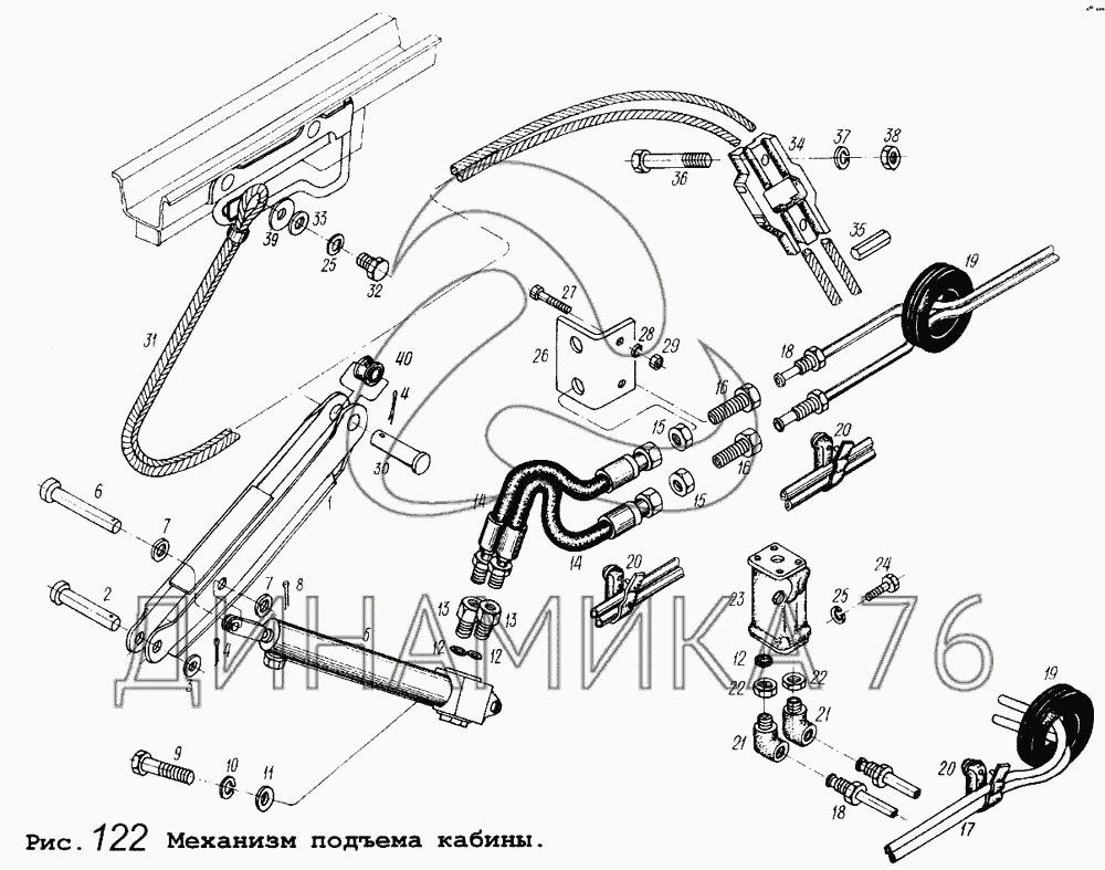Перечень комплектующих от Механизм подъема кабины на МАЗ-64255
