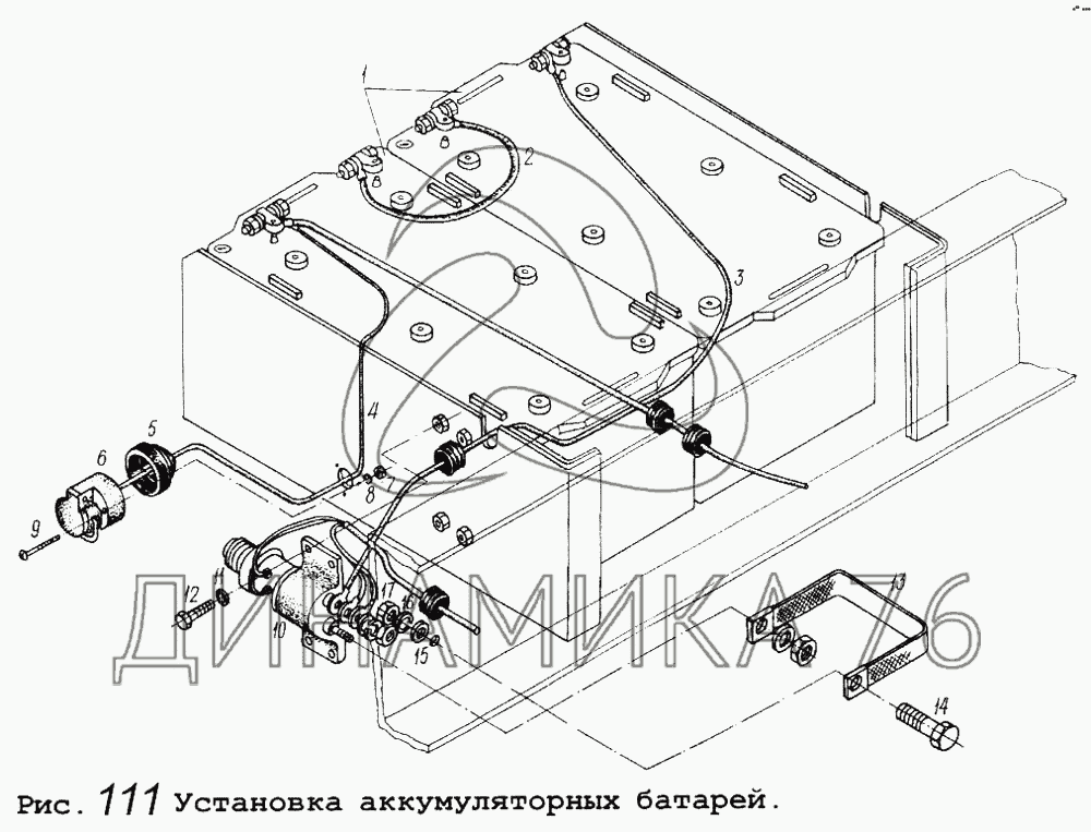 Перечень комплектующих от Установка аккумуляторных батарей на МАЗ-64255