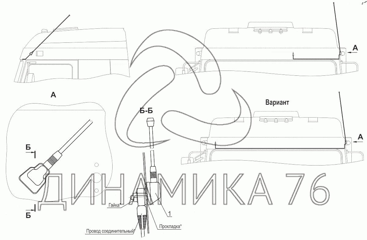 Установка антенны 6430-7900014 — МАЗ-643018: