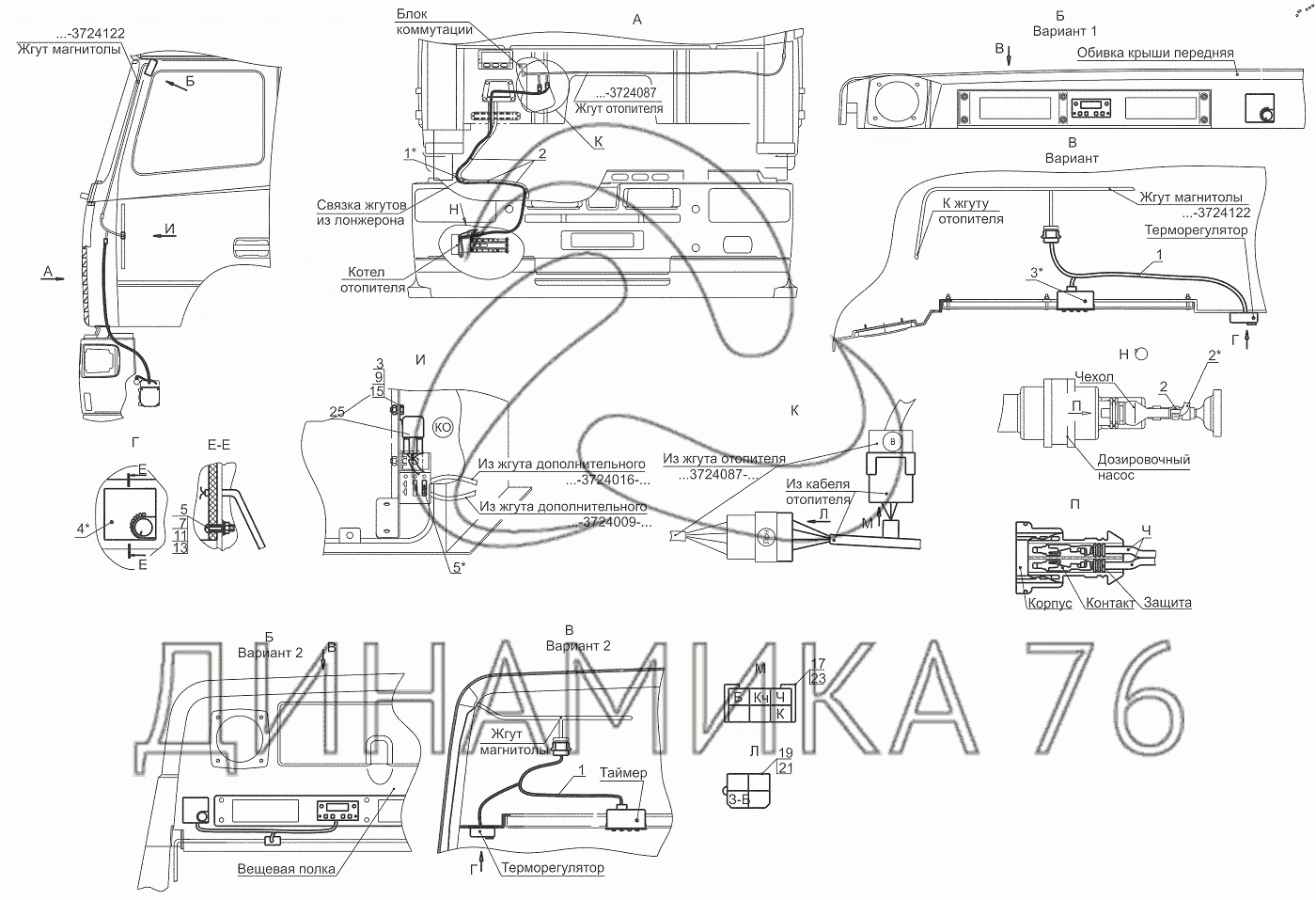 Перечень комплектующих от Установка электрооборудования подогревателя на МАЗ-643018