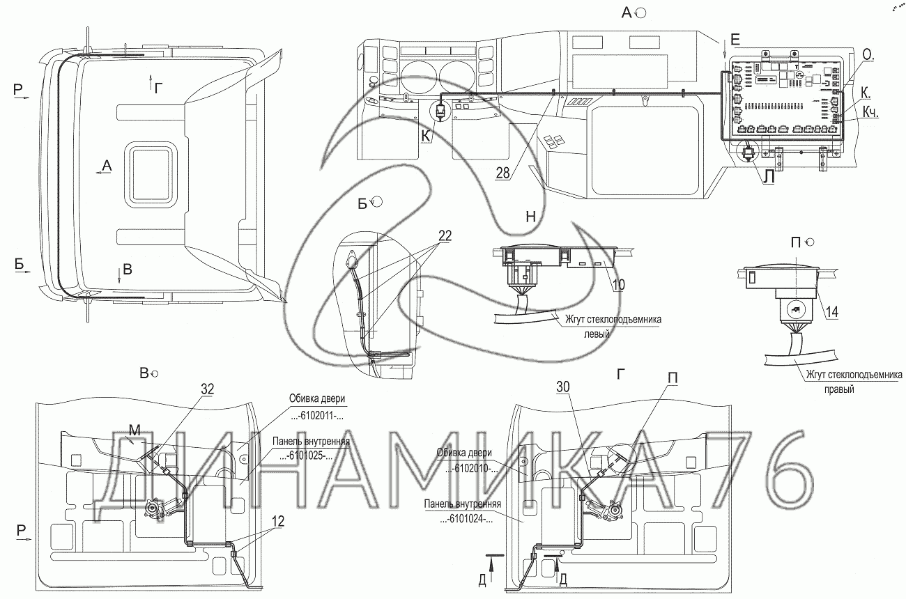Жгут стеклоподъемника по кабине