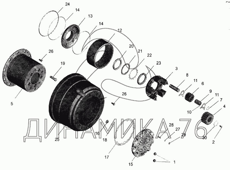 Перечень комплектующих от Колесный редуктор на МАЗ-643068