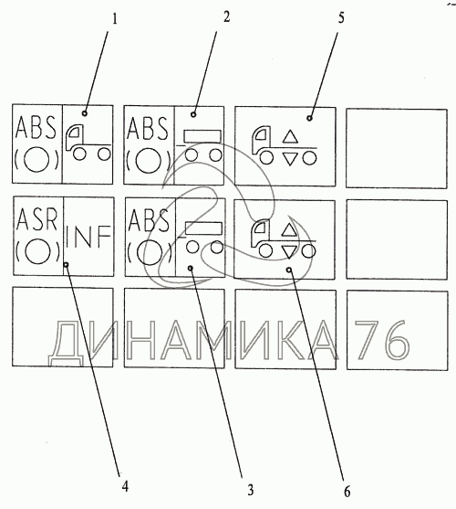 Контрольные лампы на МАЗ-643068 (до 2003 г.)