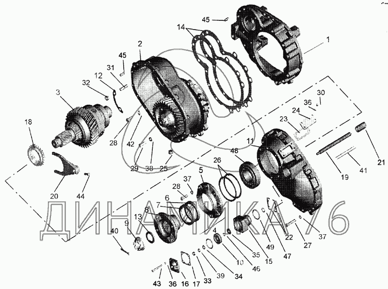 Перечень комплектующих от Редуктор среднего моста на МАЗ-643068