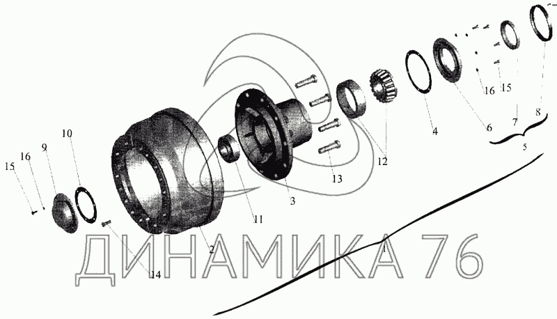 Перечень комплектующих от Ступица переднего колеса на МАЗ-643068