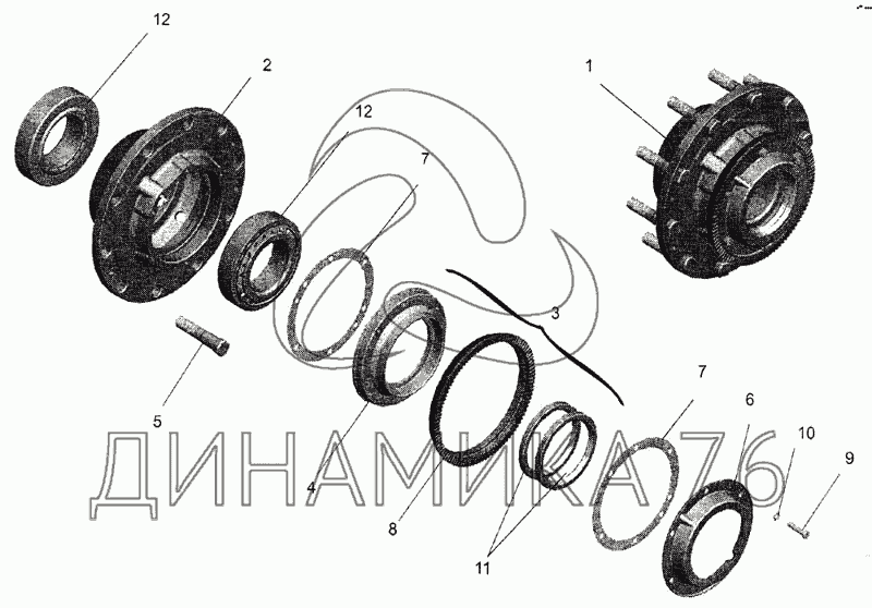 Перечень комплектующих от Ступица заднего моста на МАЗ-643068