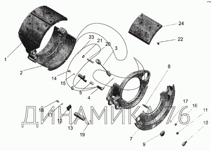 Перечень комплектующих от Тормоз заднего колеса на МАЗ-643068